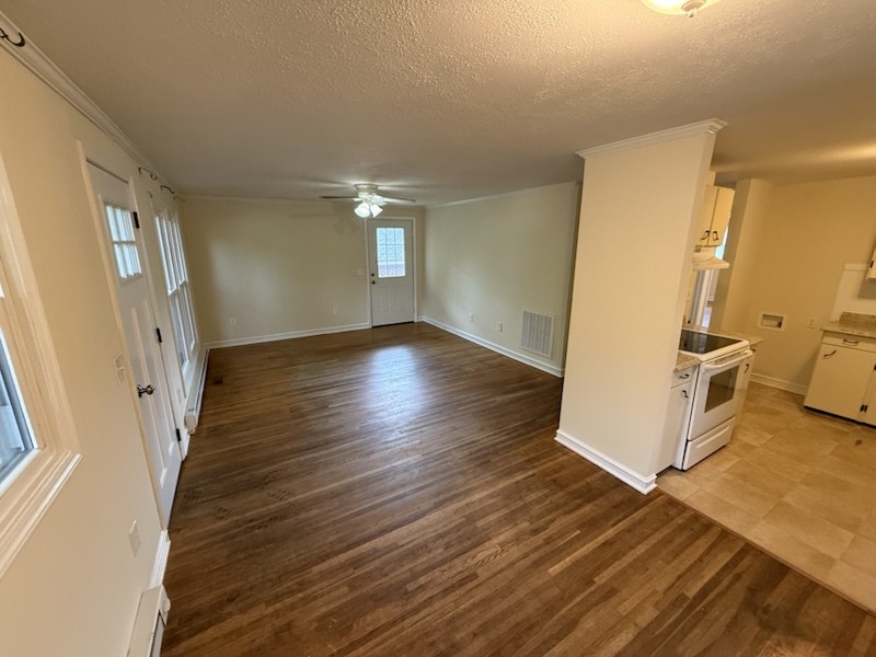 Three bedroom, one bath, single level house. Kitchen includes range/oven, refrigerator. Living room. Washer/dryer. Central heat and air. This is a pet free and smoke free property. Residents are responsible for all lawn care including mowing, trimming, mulching, leaf removal, snow removal, etc.