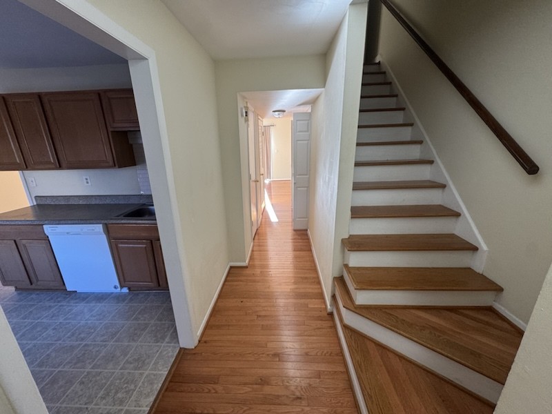 Three bedroom, one full & two half bath, townhouse. Kitchen includes range/oven, refrigerator and dishwasher. Dining room area. Living room. Washer/dryer. Enclosed private patio area - residents are responsible for upkeep & maintaining this space. Electric heat pump. This is a smoke free property. 1 pet, 50 lbs or less, permitted with approval and deposit.