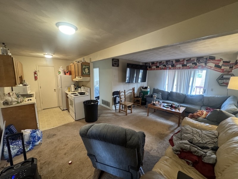 NEW SPECIAL RATE!!! Four bedroom, two bath apartment located close to downtown Blacksburg and less than a mile from Virginia Tech Campus. Unit has two full kitchens including range/oven, refrigerator, dishwasher & disposal. Double Living rooms. Electric heat pump. Private decks. Trash collection and Parking is included in the rent. (Utilities for apt E & F must be transferred into residents name). This is a pet free property. Residents have access to the Roanoke Street apartment's laundry facility Monday-Friday 9am-4pm.
