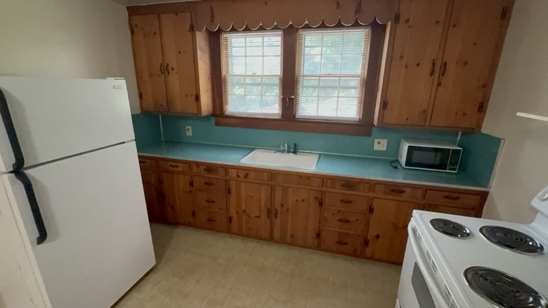 Two bedroom, one bath house. Kitchen includes range/oven and refrigerator. Living room. Main level with hardwood floors. Downstairs laundry area with washer/dryer. Oil Furnace. This is a pet free and smoke free property. Residents are responsible for all lawn care including mowing, trimming, leaf removal, snow removal, etc.